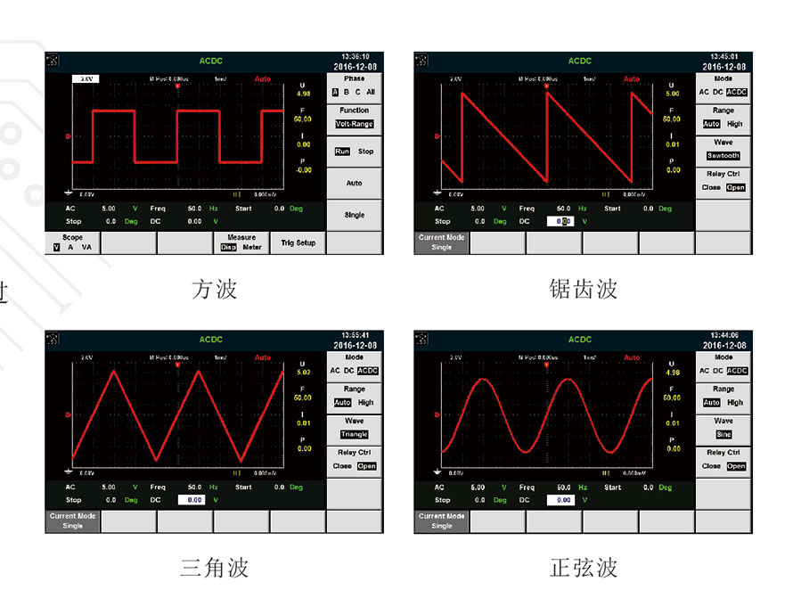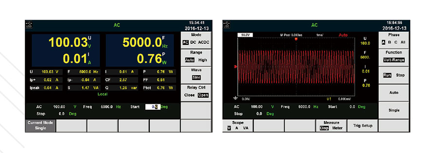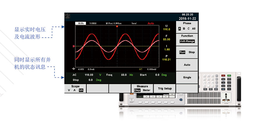 可顯示單機(jī)或者并機(jī)情況下電壓及電流的實(shí)時(shí)波型